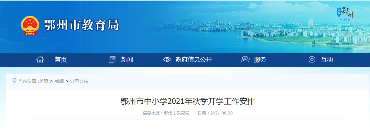 从鄂州市教育局了解到,湖北鄂州市中小学2021年秋季开学工作安排,现将有关事宜通知如下: