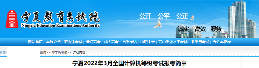 【导语】《2022年3月宁夏全国计算机等级考试报考简章》现已发布。2022年3月宁夏计算机一级考试报名时间:3月1日-5日,考试时间:3月26日-27日,©无忧考网小编现将报考信息整理如下: