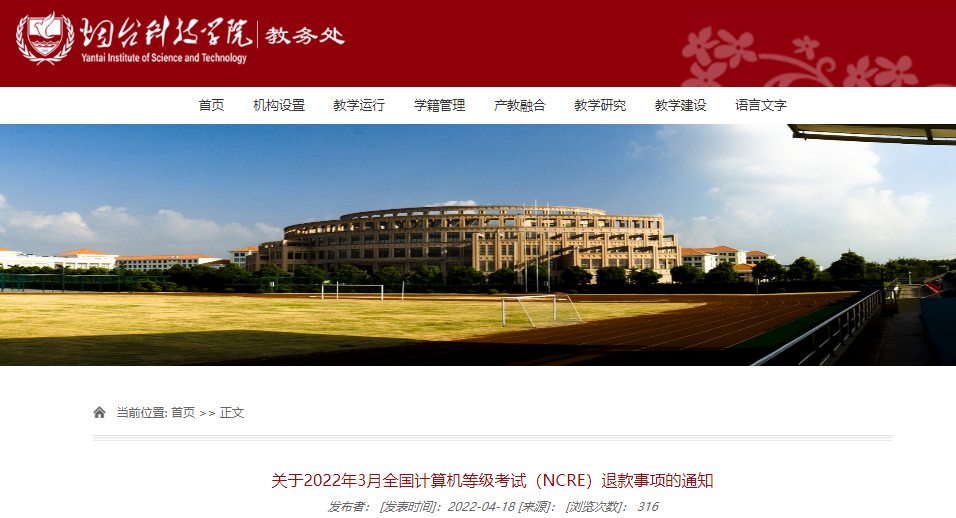 根据烟台市招生考试院通知,现将2022年3月全国计算机等级考试(NCRE)退款事项说明如下: