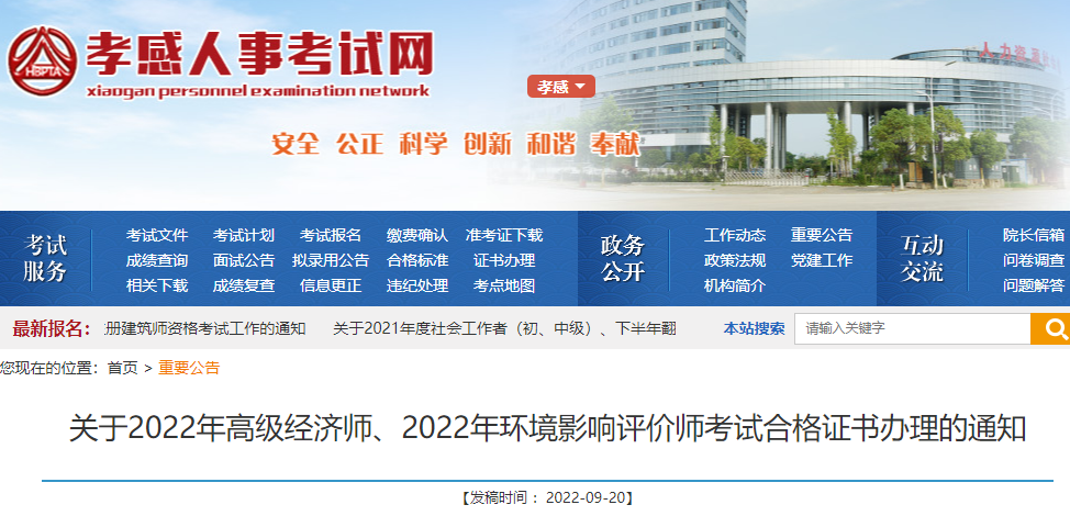 2022年高级经济师、2022年环境影响评价师考试合格证书开始办理发放,现将有关事项通知如下:
