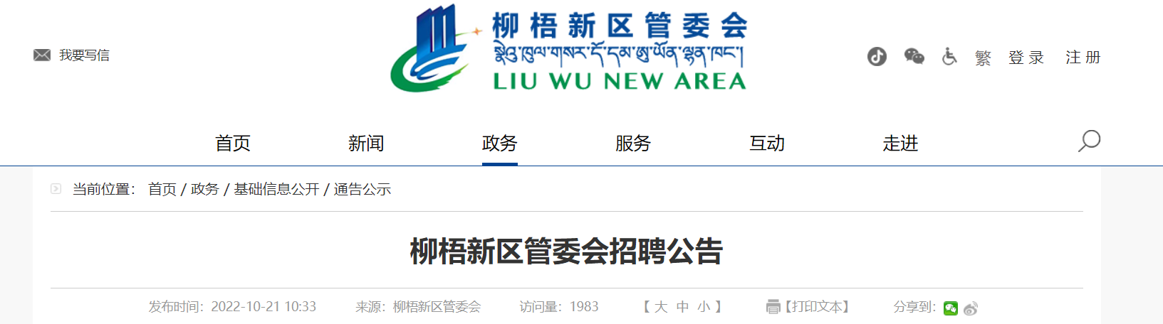 原文标题:柳梧新区管委会招聘公告