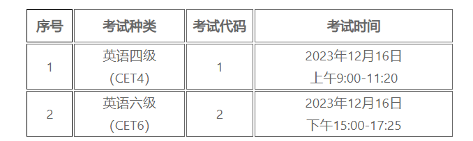 2023年12月16日将举行全国大学英语四级、六级考试,考生需进行网上报名(全国大学英语四、六级考试报名网站(http://cet-bm.neea.edu.cn),现就报名有关事项通知如下: