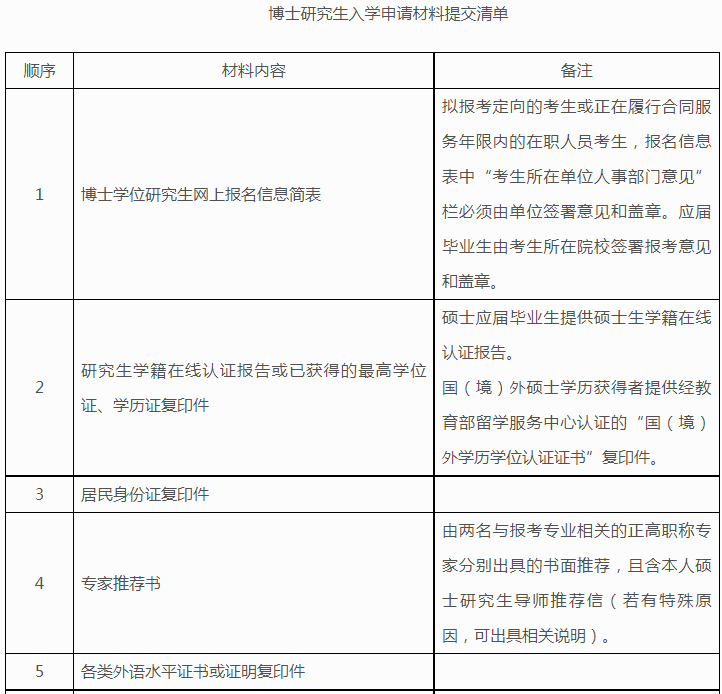 1.提交博士研究生入学申请材料自查表