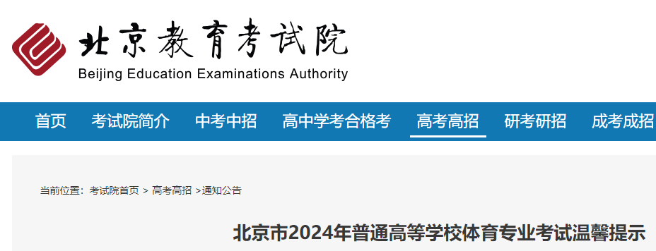 北京市2024年普通高等学校招生体育专业考试将于4月13日、14日在首都体育学院举行,为确保广大考生顺利参加考试,现就有关事项提示如下: