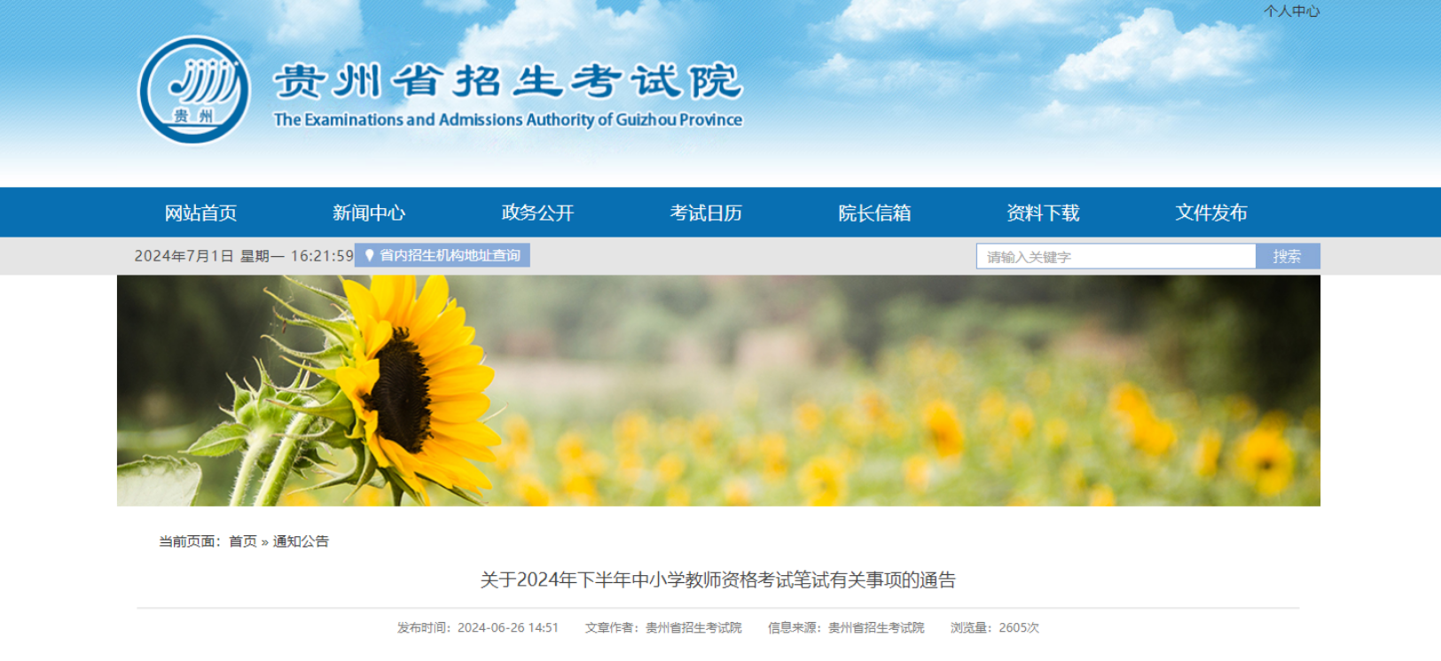 点击进入>>>2024下半年贵州中小学教师资格考试笔试报名入口