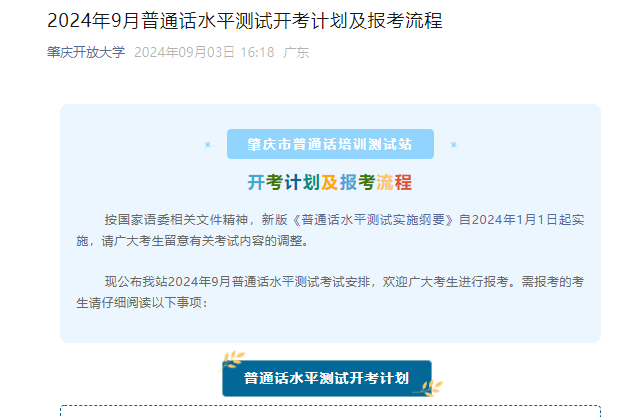 现公布我站2024年9月普通话水平测试考试安排,欢迎广大考生进行报考。需报考的考生请仔细阅读以下事项: