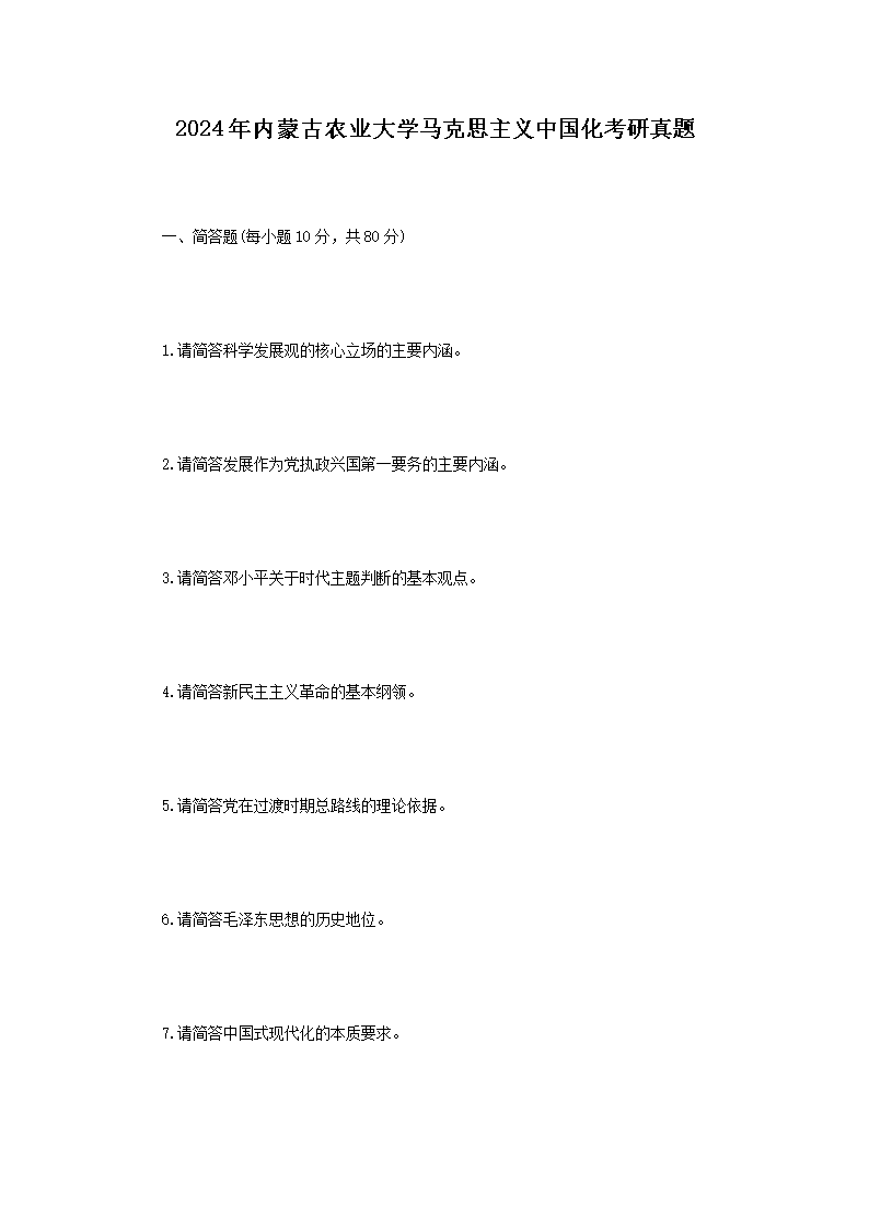 【文档名称】2024年内蒙古农业大学马克思主义中国化考研真题(Word版)