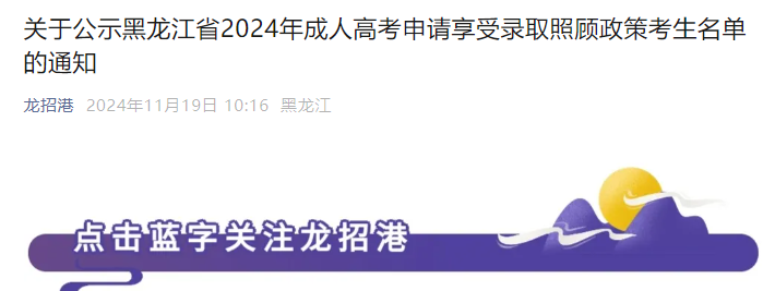 【导语】©无忧考网从黑龙江省招生考试院了解到,黑龙江2024年成人高考申请享受录取照顾政策考生名单的通知已公布,具体如下: