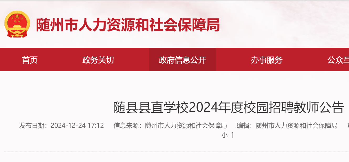 招聘公告在随县人民政府、随州市人社局、各招聘高校的门户网站发布。