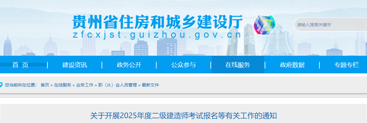 (三)有关本次考试全周期的重要信息,考试机构将通过“贵州省住房和城乡建设厅”网站及时发布,请报考人员保持关注,以免贻误。