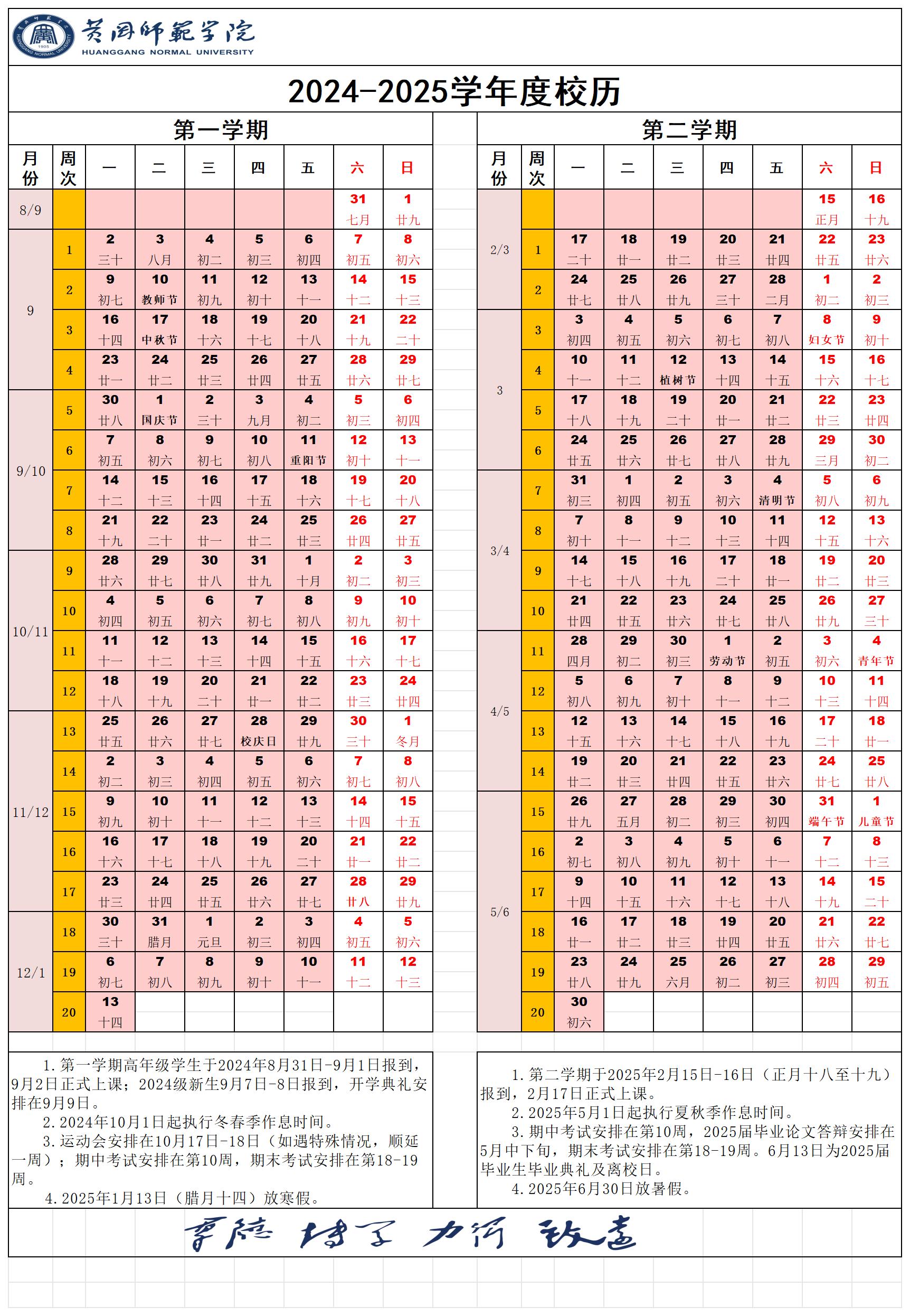 1.#2024-2025学年度第二学期校历