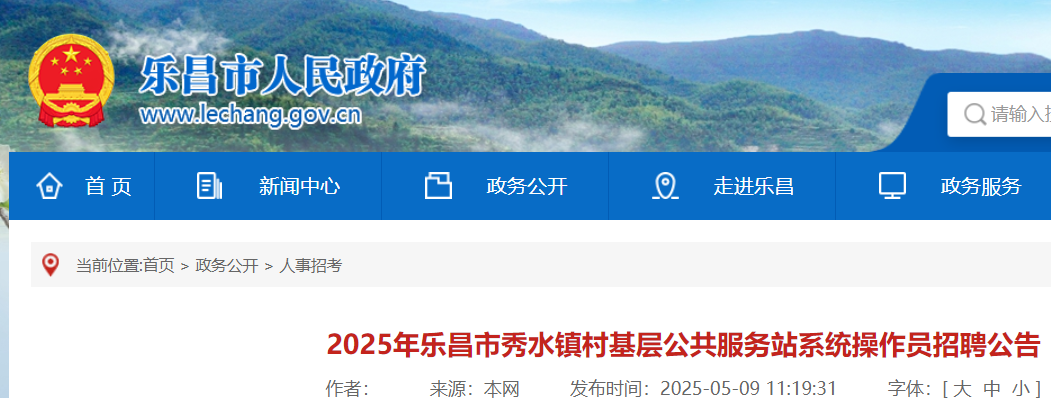 根据乐昌市秀水镇人民政府工作的需要,按照“公开、平等、竞争、择优”原则,秀水镇人民政府特面向社会公开招聘村基层公共服务站系统操作员3名,现将有关事项公告如下:
