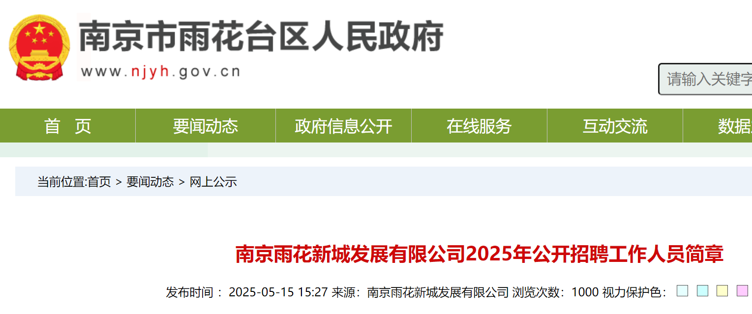 招聘简章在南京市雨花台区人民政府网(http://www.njyh.gov.cn/)上发布。