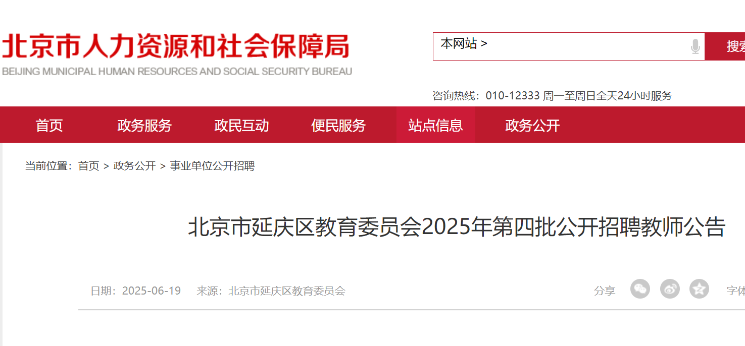 北京市延庆区教育委员会2025年第四批公开招聘教师岗位信息表