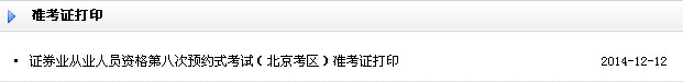 北京2014年12月证券预约式考试准考证打印时间:12月12日已开通。