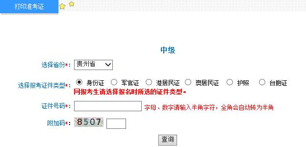 2015年贵州中级会计职称考试准考证打印入口 已开通