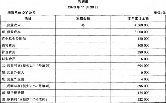 61.XY公司所得税税率为25%,该公司20×8年11月份的利润表如下表所示: