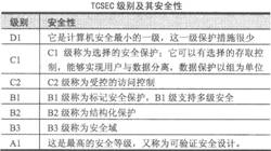 美国国防部所属的国家计算机安全中心(NCSC) 提出了网络安全标准(DoD5200.28 STD),即可信任计算机标准评估准则(TCSEC),也称为橘皮书。美国国防部安全准则(TCSEC)分为4类7个级别,安全性从低到高分别为:Dl、Cl、C2、Bl、B2、B3、Al级别。协议TCSEC级别及其安全性见下表。