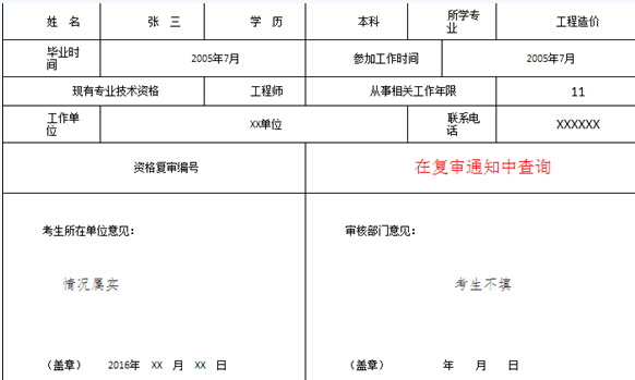 重庆市造价工程师考试报名条件复审表