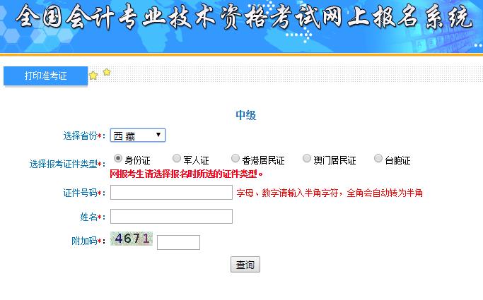 进入页面后,考生在确定为中级后,按照报名指导进行选择考试的省份、报考证件类型、证件号码。
