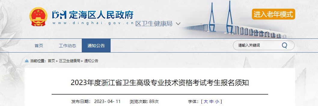 2023年浙江舟山定海区卫生高级专业技术资格考试考生报名须知[现场确认时间5月4日起]